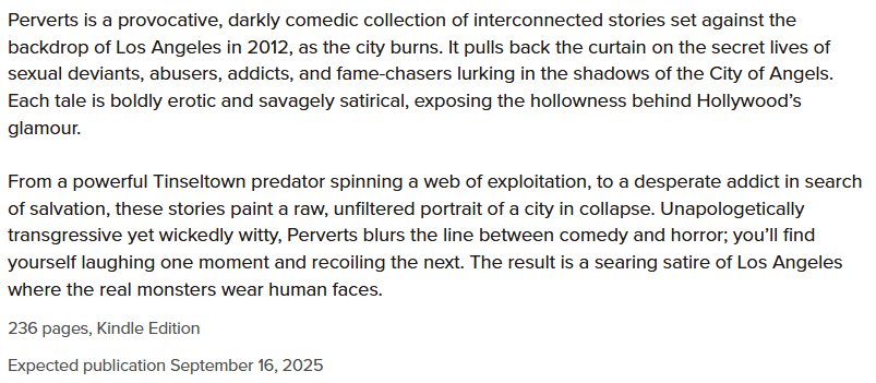 I want to thank you, Boils and Ghouls, for taking the time to read my honest ARC review of Perverts, as well as Adam Cosco himself, for sending this ghoul an advanced copy to read.